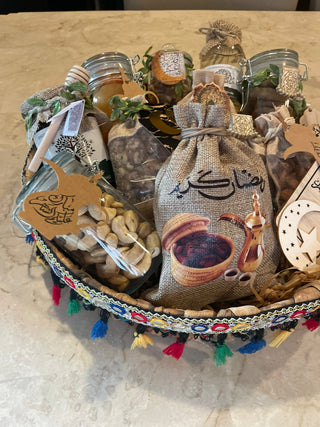 Explore our beautiful custom hampers and personalized giveaways for any occasion. Perfect for Ramadan, Eid, baby showers, and more, our hampers fit all budgets and include items like premium honey, gourmet olive oil, handmade soaps, and dried fruits. Make every moment special with our thoughtfully customized gifts, ideal for both personal and corporate iving.